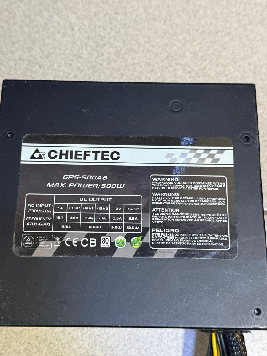 Chieftec GPS-500AB — это блок питания с мощностью 500 Вт, предназначенный для компьютеров и серверов