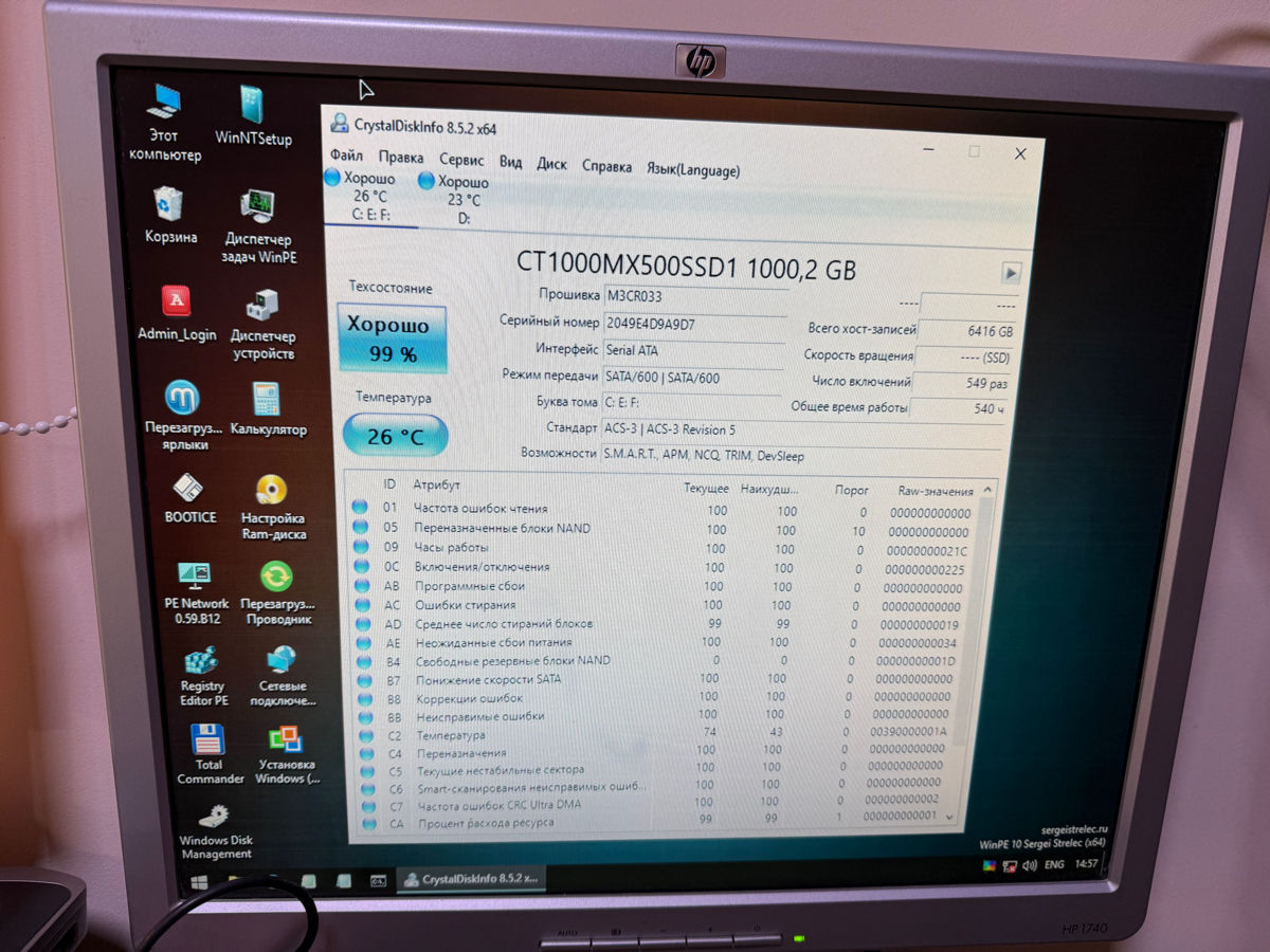 Crucial MX500 — накопитель, у которого за плечами всего 540 часов работы, а впереди годы верной службы.