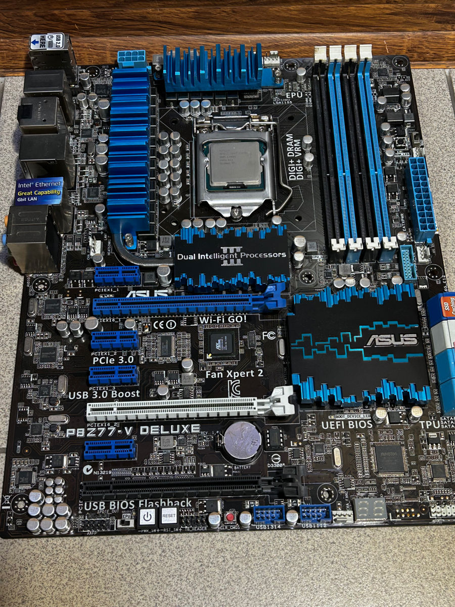 Продам комплект из материнской платы Asus P8Z77-V Deluxe и процессора Intel Core i7-3770K. Отличное сочетание для сборки мощного ПК для работы и игр!