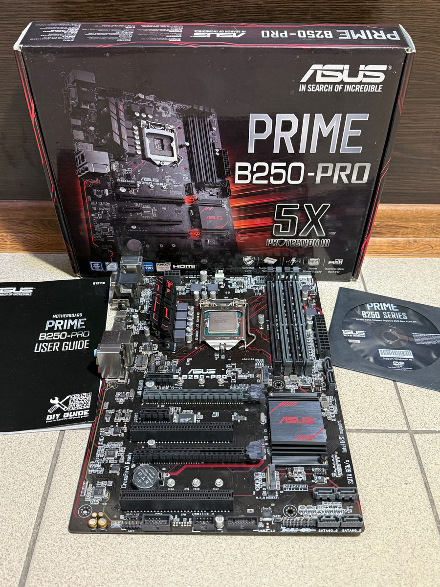 Продается комплект из материнской платы Asus Prime B250 Pro и процессора Intel Core i5 6500T. Это надежная связка для сборки домашнего или офисного компьютера с отличным запасом производительности и возможностью апгрейда.