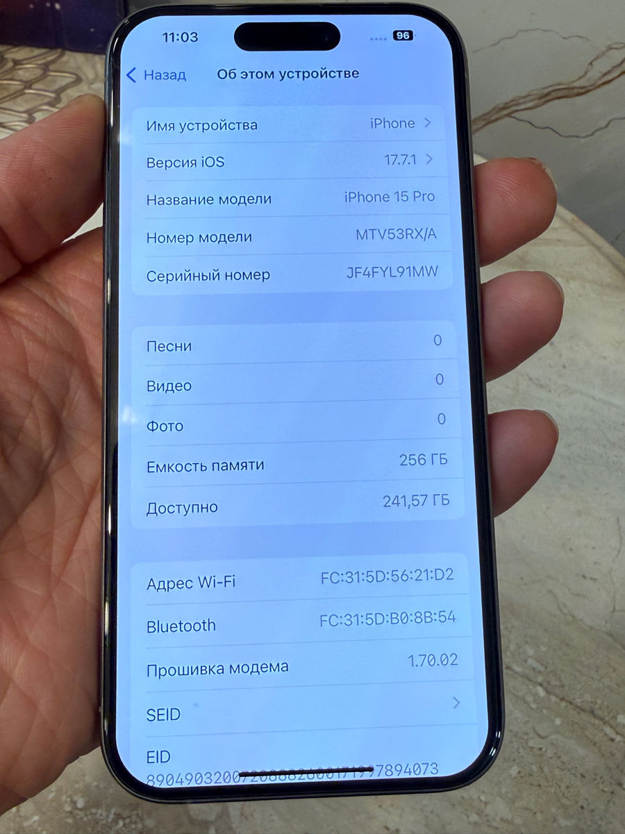 • Модель: iPhone 15 Pro