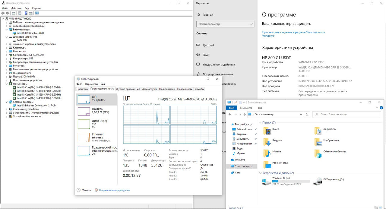 Главная Shop Настольные ПК HP EliteDesk 800 G1 USDT (i5-4690, ram 8GB, ssd 256gb)