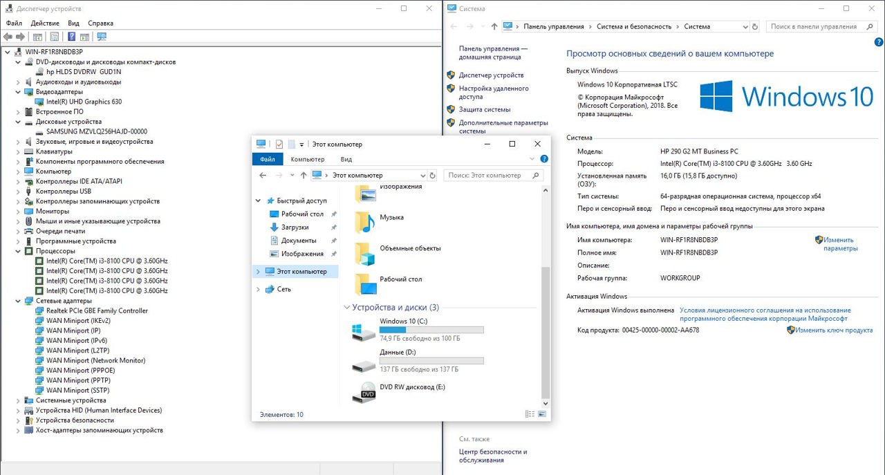 Прекрасный, надежный и самое главное очень тихий бизнес компьютер HP Prodesk 290 G2. Лицензированный Win 10. Имеет два выхода для подключения мониторов VGA и HDMI + 8 входов USB из них 6шт USB 3.0