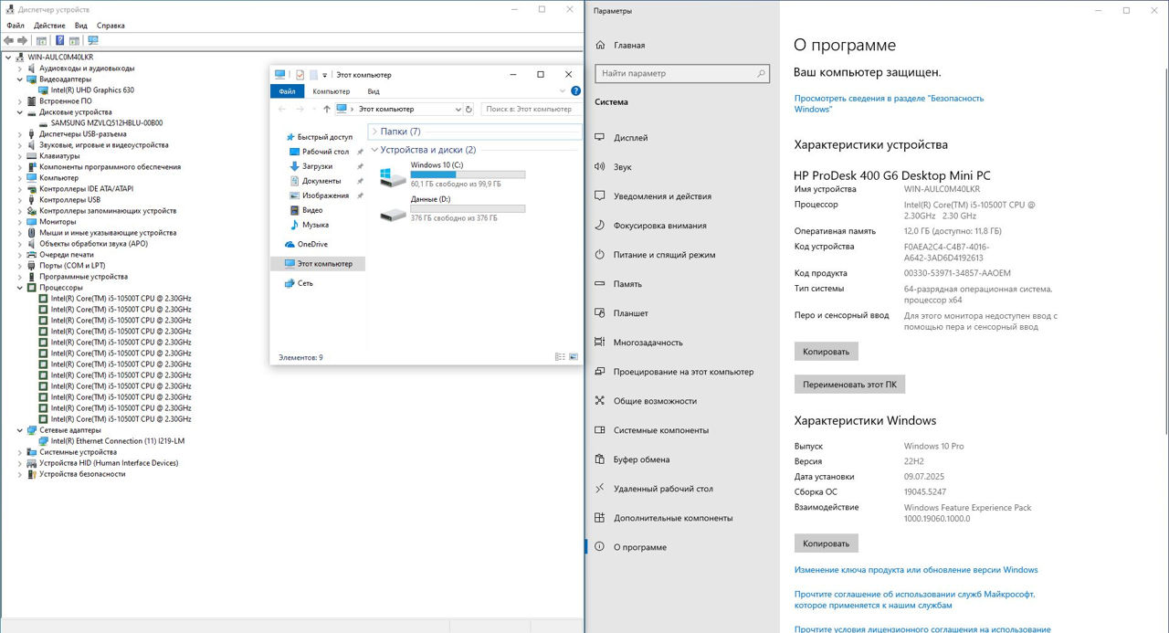 HP ProDesk 400 G6 Mini (Core i5-10500T, 12gb, 512gb NVMe)