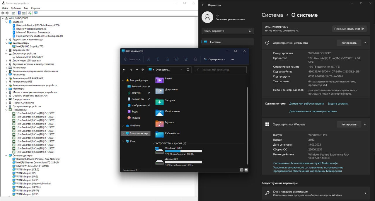 Процессор: Intel Core i5-12500T — 6 ядер, 12 потоков до 4,4Ghz, высокая энергоэффективность и отличная скорость в офисных задачах и многозадачности