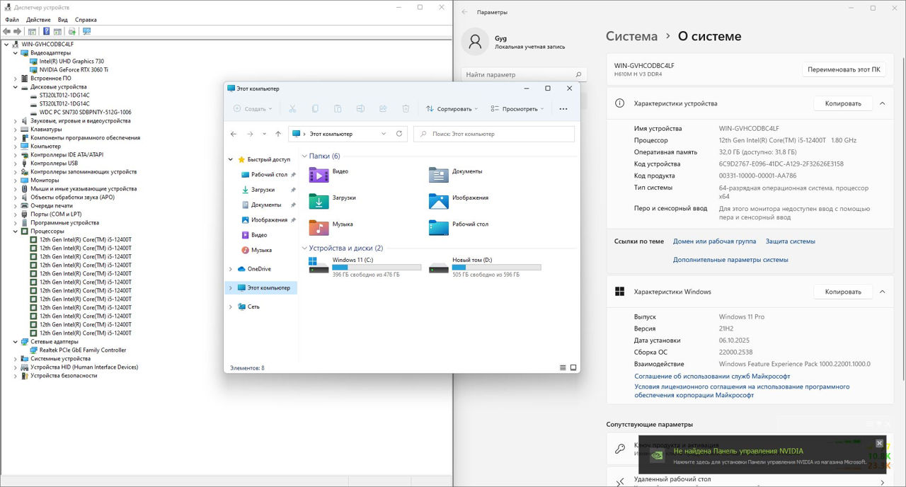 Игровой ПК Core i5-12400T, RTX 3060 Ti, DDR4 32GB, NVMe 512GB + HDD 640GB