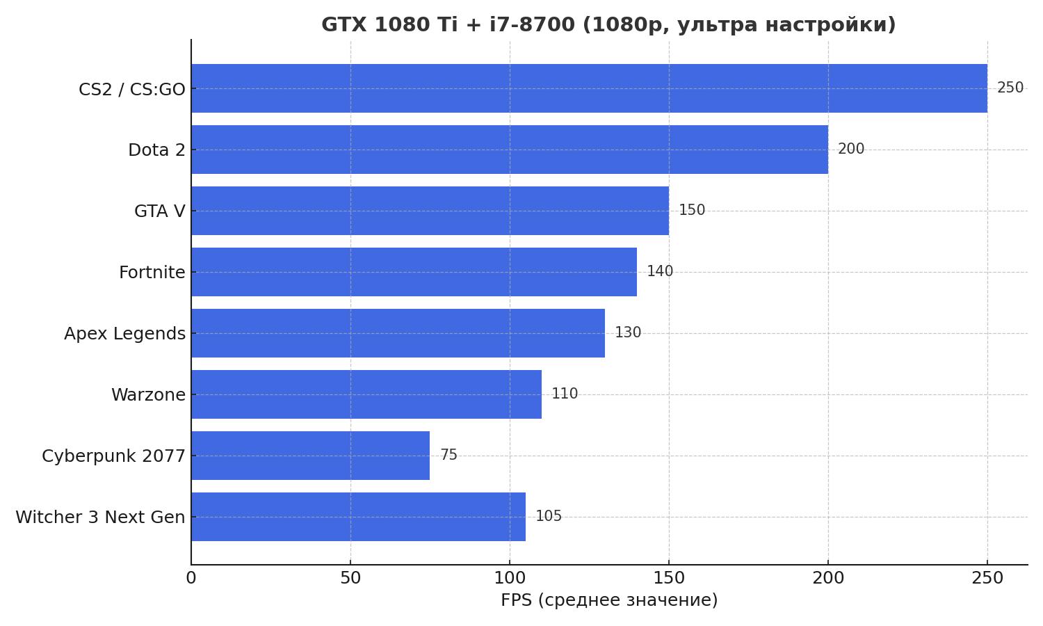 Этот ПК идеально подойдёт для тех, кто хочет играть в современные игры на ультра, стримить, работать с монтажом и 3D. GTX 1080 Ti — это легенда, которая по сей день уверенно стоит рядом с картами нового поколения.