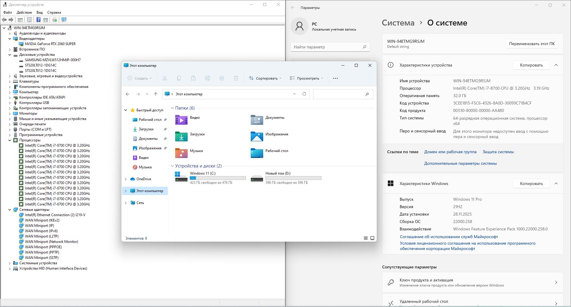 Игровой ПК на i7-8700, DDR4 32GB, RTX 2060 Super 8GB GDDR6, NVMe 512GB + HDD 640GB