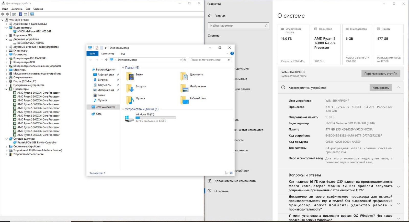 – Процессор AMD Ryzen 5 3600, 6 ядер 12 потоков, частота до 4.2 ГГц