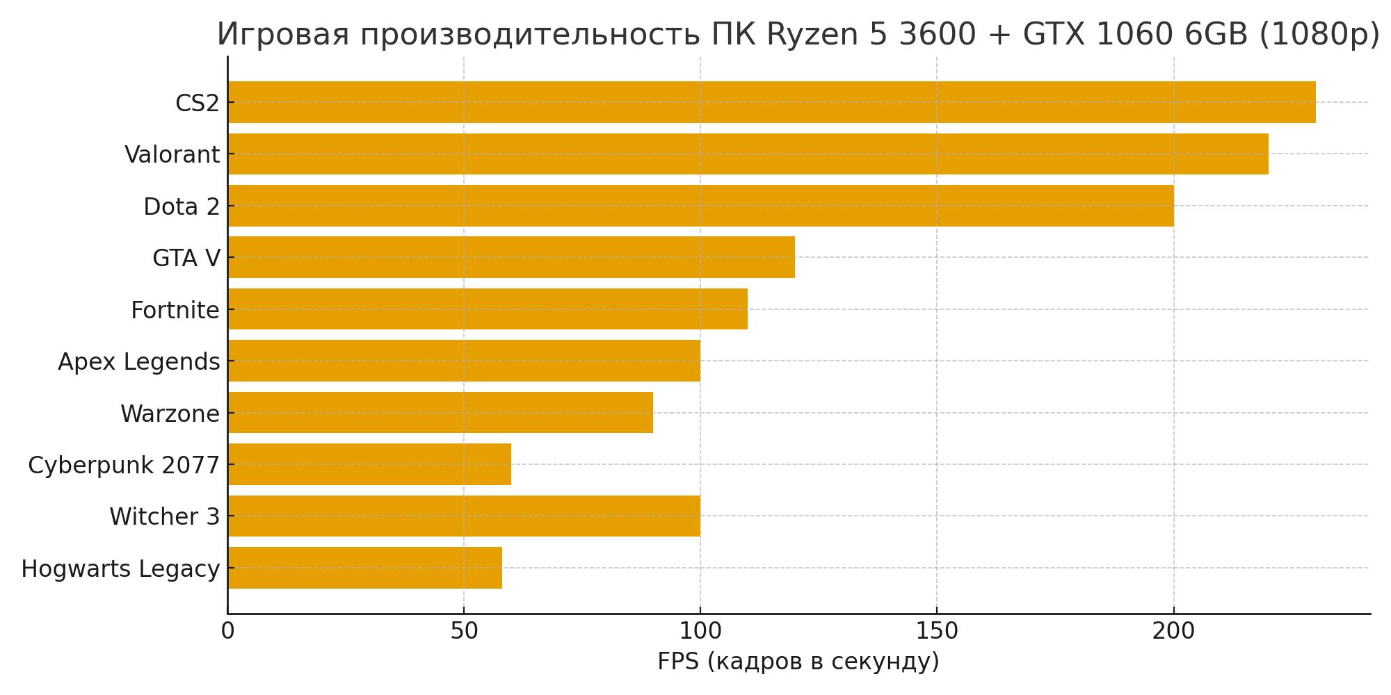 – CS2, Valorant, Dota 2 — 180–250 FPS