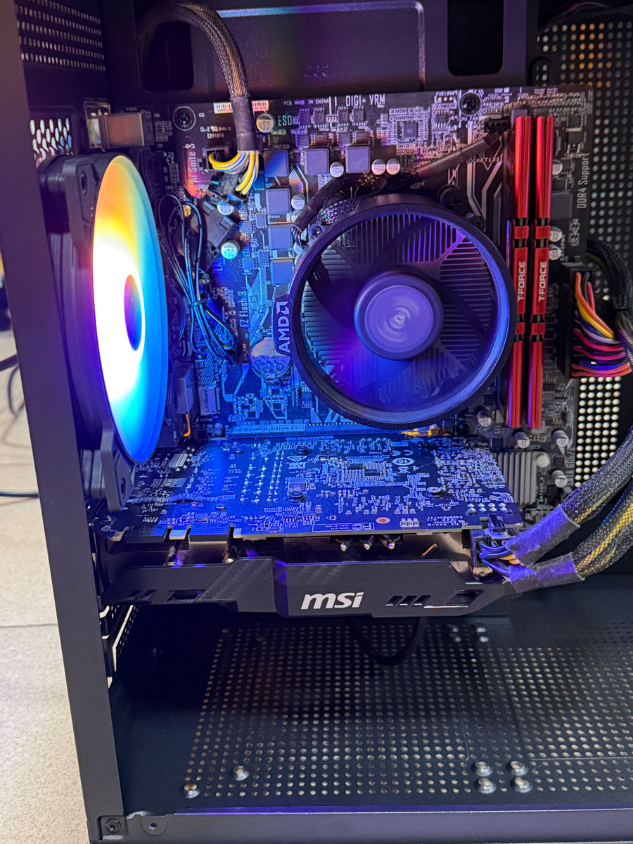 В основе система с материнской платой Asus A320M-K и 16GB быстрой памяти VulcanZ TForce 3200MHz что обеспечивает отличную многозадачность и плавный геймплей. Хранение данных организовано на NVMe SSD Kingston 512GB с мгновенным запуском игр и приложений. За питание отвечает блок Corsair 450W с сертификатом 80 Plus а в стильном корпусе Gamemax с закаленным стеклом всё это выглядит современно и аккуратно