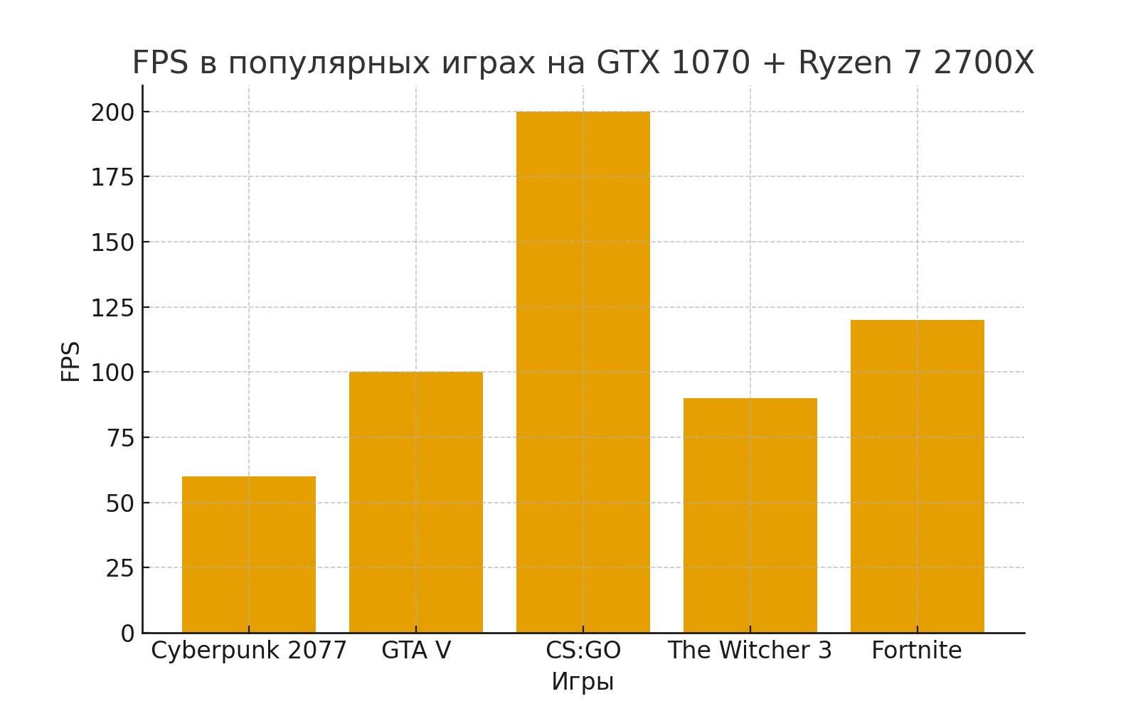 Этот компьютер отлично подойдет для игр в разрешении Full HD на высоких настройках и для работы с любыми повседневными задачами. Ryzen 7 2700X и GTX 1070 по сей день остаются золотым сочетанием для геймеров которые ценят баланс между ценой и производительностью