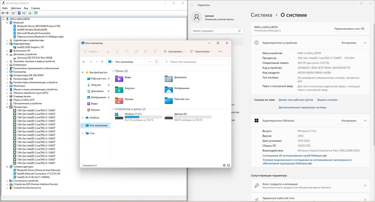 Главная Shop Настольные ПК Lenovo ThinkCentre M70q Gen 5 (i5-13400T, DDR5 16GB, NVMe 512GB Samsung EVO Plus)