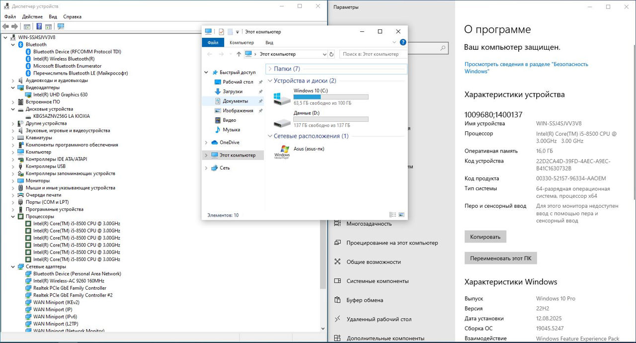 • Хранилище: SSD NVMe Kioxia 256GB — мгновенная загрузка системы и программ
