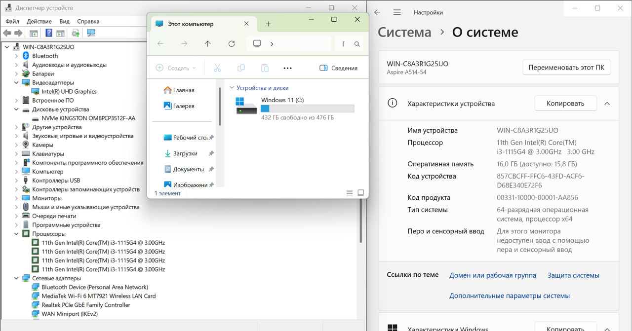 16 ГБ оперативной памяти позволяют уверенно работать с браузером, офисными приложениями, видеосвязью и простым графическим софтом.