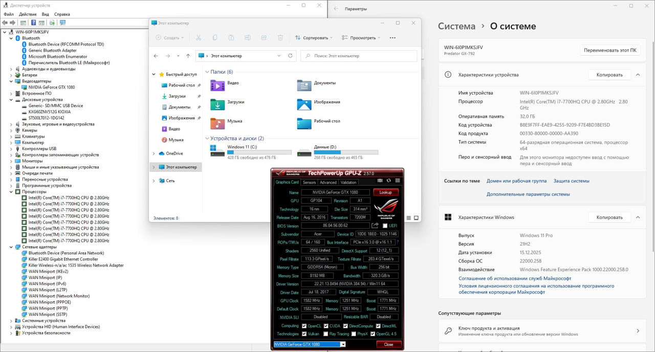• SSD: NVMe Kioxia 512 GB — быстрый системный диск