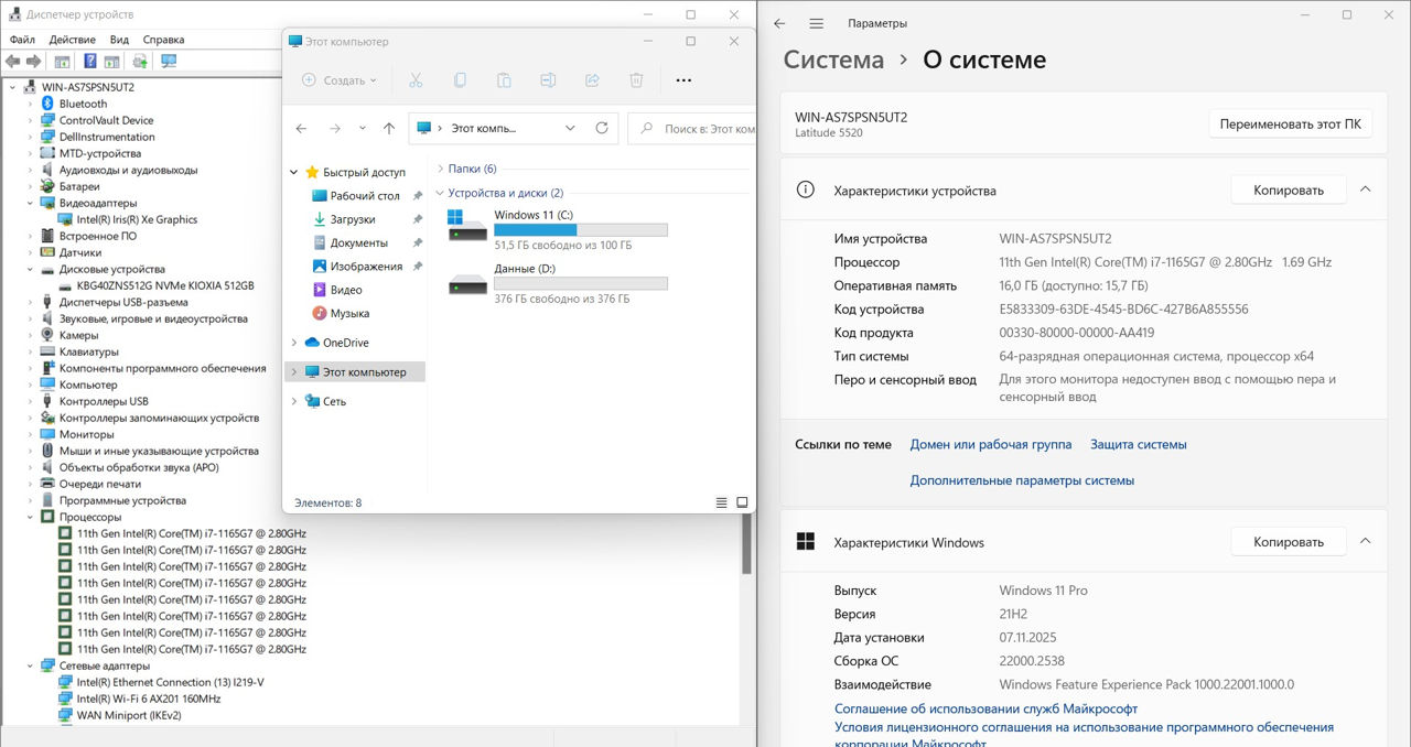 • Процессор: Intel Core i7-1165G7 (4 ядра / 8 потоков, до 4.7 ГГц)
