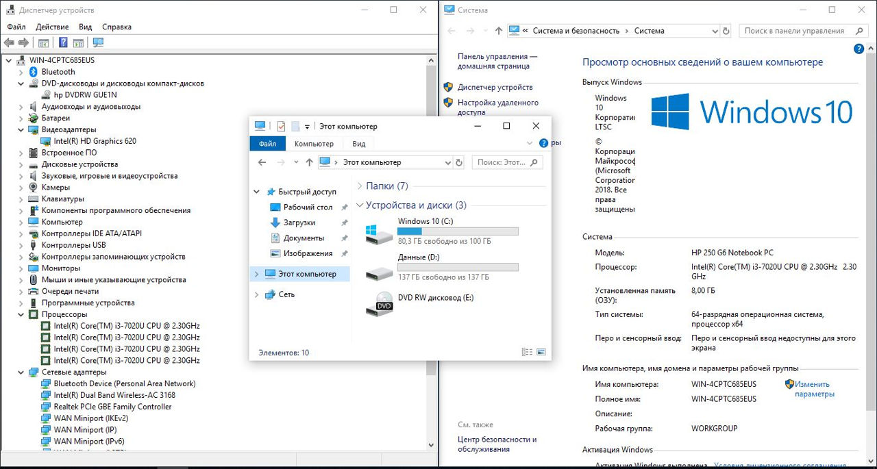 HP 250 G6 (i3 7Gen, DDR4 8GB, SSD 256Gb, 15.6 HD)