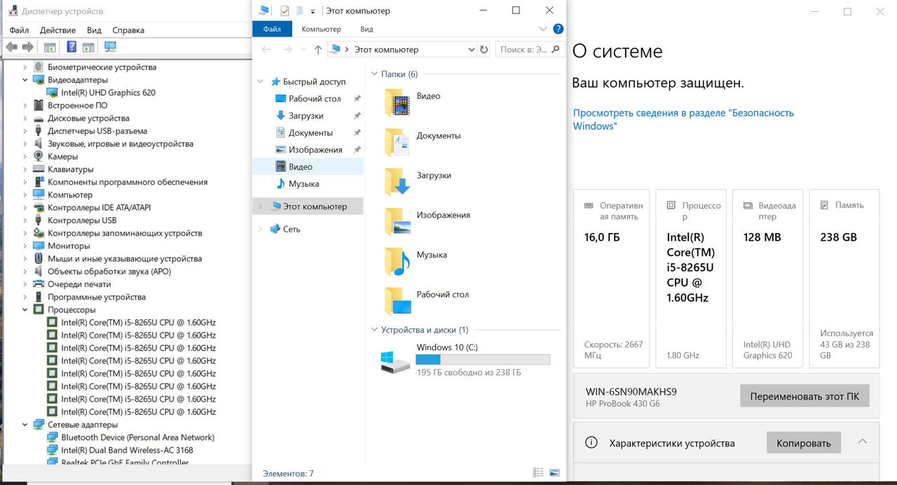 Процессор Intel Core i5 8265U 4 ядра 8 потоков частота до 3.9 ГГц обеспечивает быструю и стабильную работу