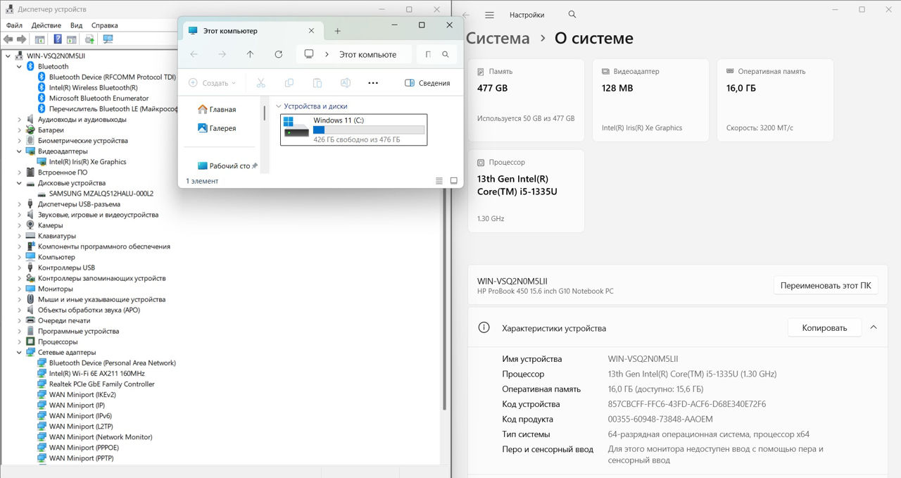 • Процессор: Intel Core i5-1335U (10 ядер / 12 потоков, до 4.6 ГГц)