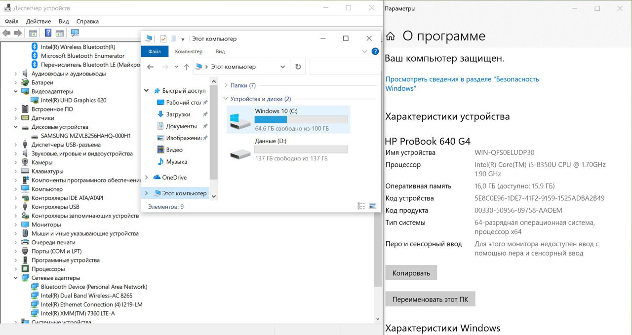 • Процессор: Intel Core i5-8350U (4 ядра, 8 потоков, базовая частота 1.7 ГГц, турбочастота до 3.6 ГГц)