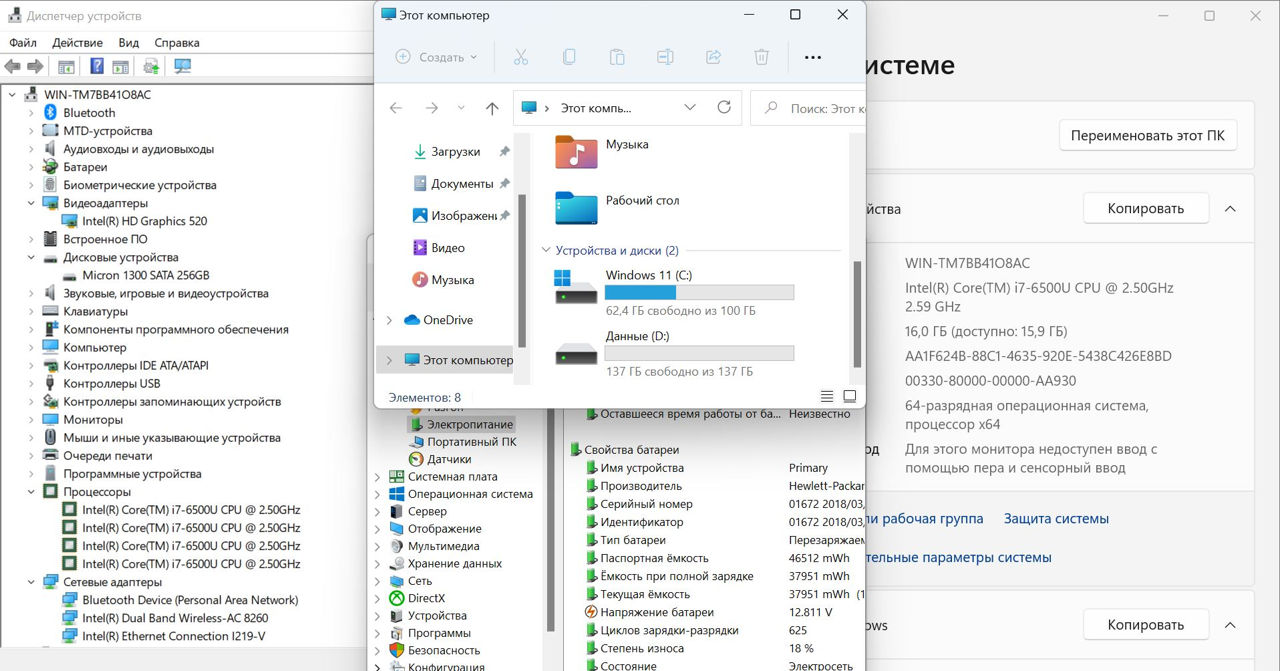 удобен для работы вне дома - Износ батареи: всего 18%