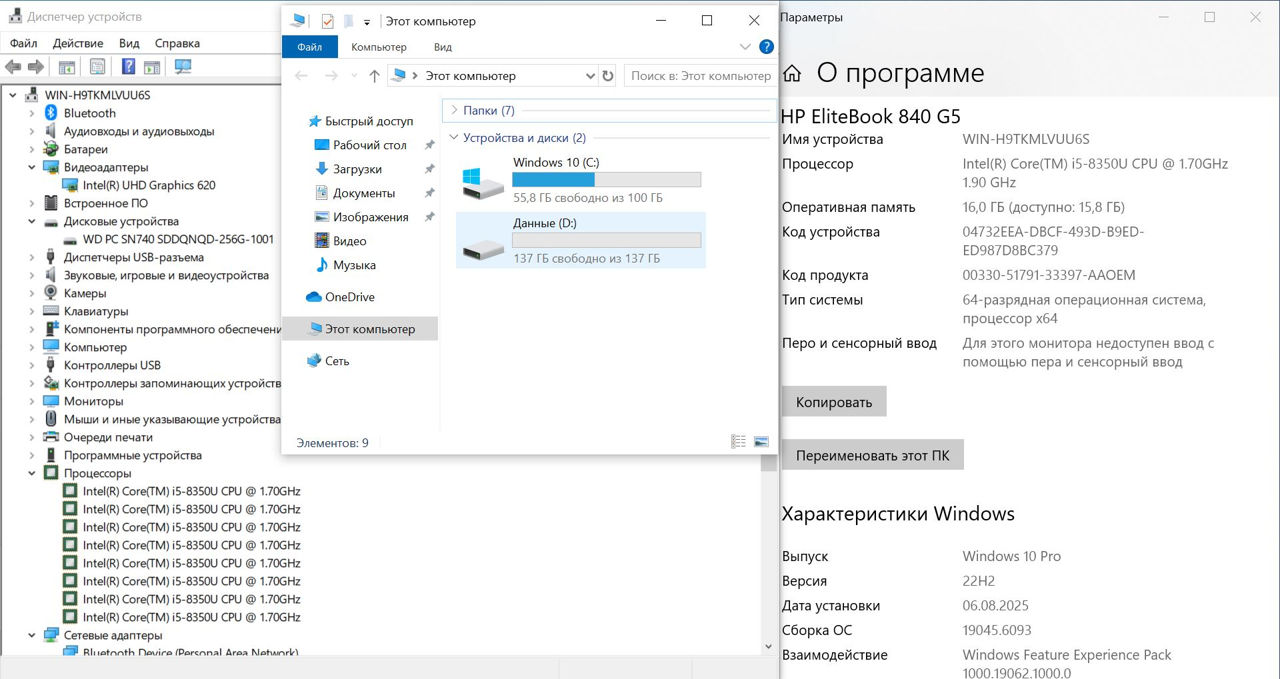 • Процессор: Intel Core i5-8350U — 4 ядра и 8 потоков, высокая энергоэффективность, производительность как у старших моделей